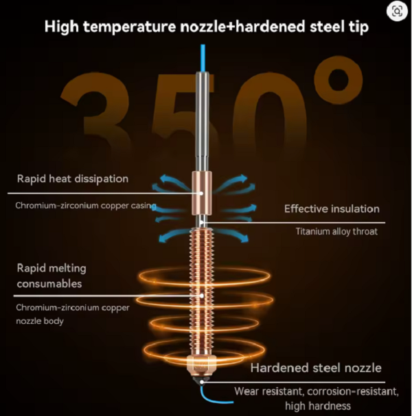 Compatibilidad: Diseñado específicamente para los modelos Creality K2/HI Diseño: Nozzle integrable y desmontable para una intercambio eficiente Precisión de impresión: Ajuste preciso con un diámetro de 0,4 mm Durabilidad: Construcción robusta para una vida útil prolongada Temperatura de funcionamiento: Soporta temperaturas de hasta 105℃